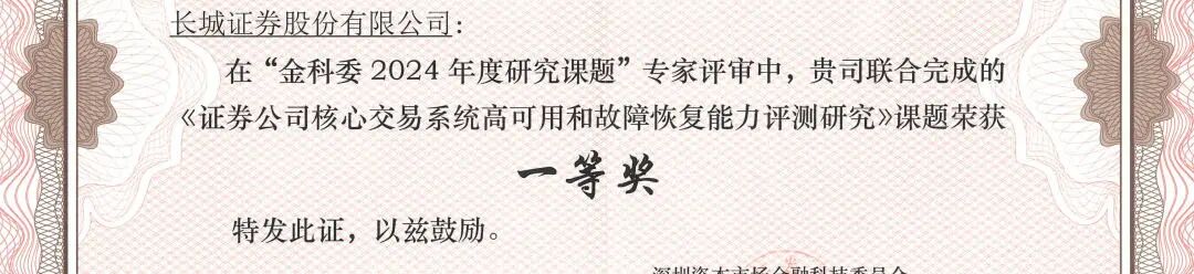 长城证券荣获金科委2024年度研究课题唯一一等奖